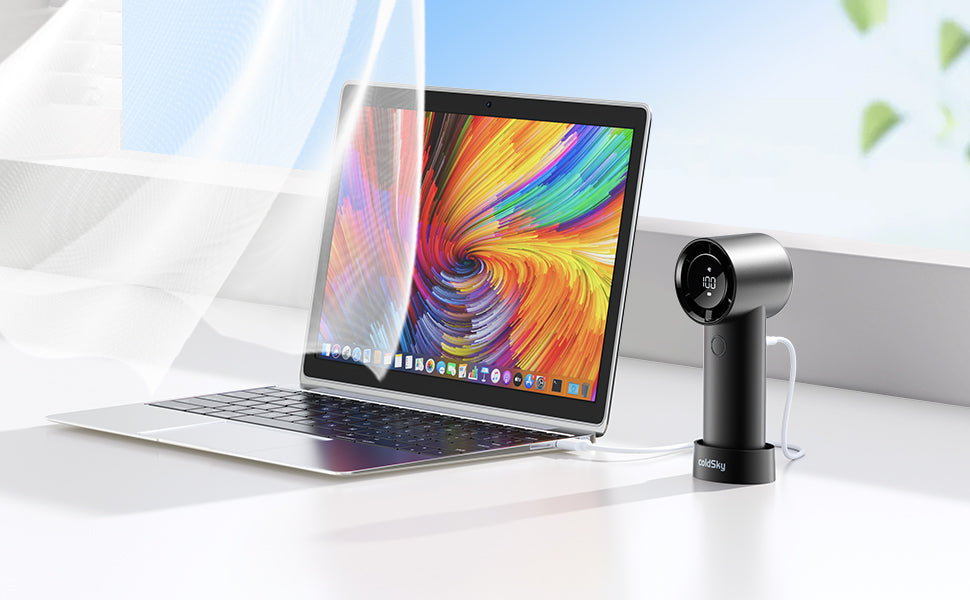 The small fan has a digital screen which allows you to easily monitor the battery level and adjust the fan speed. With 5 different speed settings, you can customize the airflow to suit your needs and preferences.